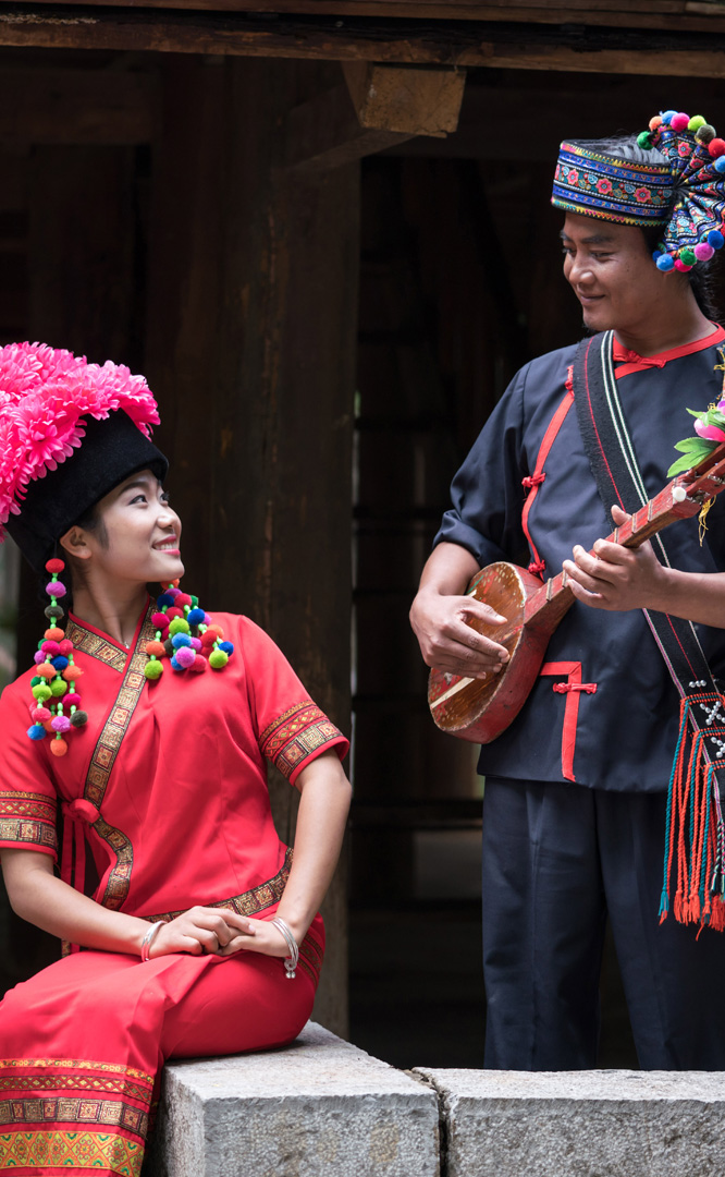 云南的布依族人口近5.5萬人,主要聚居于曲靖、文山、紅河幾個州、市的10余個縣境內(nèi),其族源歸為古代“百越”,曾有過“謝蠻”、“仲家”等稱代,是百越族系中駱越人的一支。農(nóng)耕民族,以農(nóng)歷紀(jì)年,物產(chǎn)豐富,自然條件較好;有語言,通行漢文,文學(xué)興盛,歌舞升平,民間信奉“萬物有靈、多神主宰”的原始宗教,代表節(jié)慶為祭社神節(jié)(六月初六)。布依族寨子傍水而建,兩幢民居忠于民間的構(gòu)建方式,實(shí)現(xiàn)了邛籠系與板屋系建筑手法...
